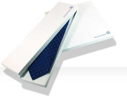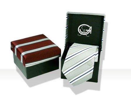 Kleine Geschenkbox mit einem Bezug aus Seide im Design der Krawatte - optional mit Manschettenknöpfen und invividuellem Aufdruck im Deckel oder außen auf der Box.